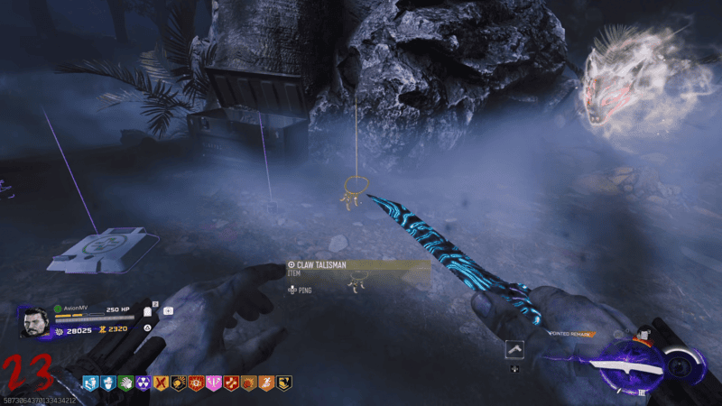 Pour obtenir le Talisman Claw, vous devrez battre le boss secret Zursa HVT trouvé à la fin de l'œuf de Pâques Bear Tracks, mais vous ne pouvez utiliser qu'une arme de mêlée. Pour cette raison, je vous recommande d'obtenir votre arme de mêlée au moins au niveau de rareté épique, Pack-a-Punch niveau 2, et d'obtenir l'avantage Melee Macchiatto.