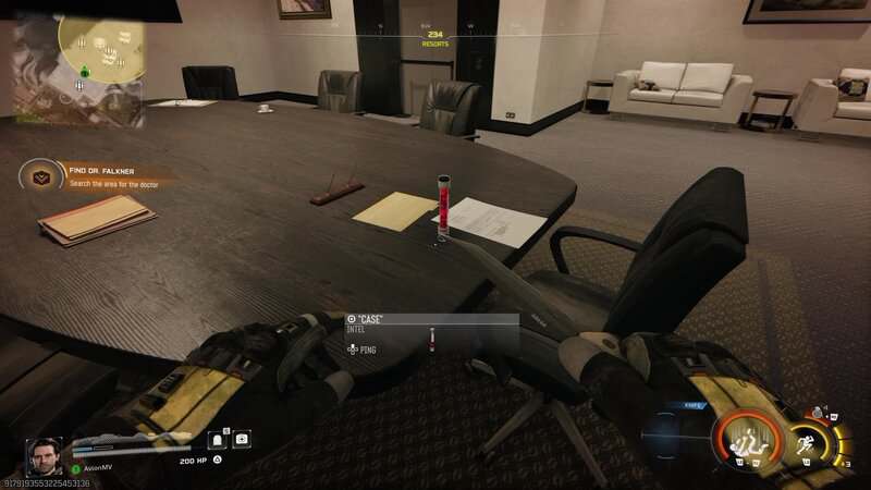 Rendez-vous dans le gratte-ciel où se trouve le Dr Falkner. Une fois à l’intérieur, dirigez-vous vers le toit. Ceux qui ont joué Opérations noires 6 reconnaîtra ce toit comme la carte multijoueur Skyline. Sortez par la porte à côté du piano et montez les escaliers à proximité pour entrer dans une salle de conférence. Cet Intel se trouve sur le bureau.