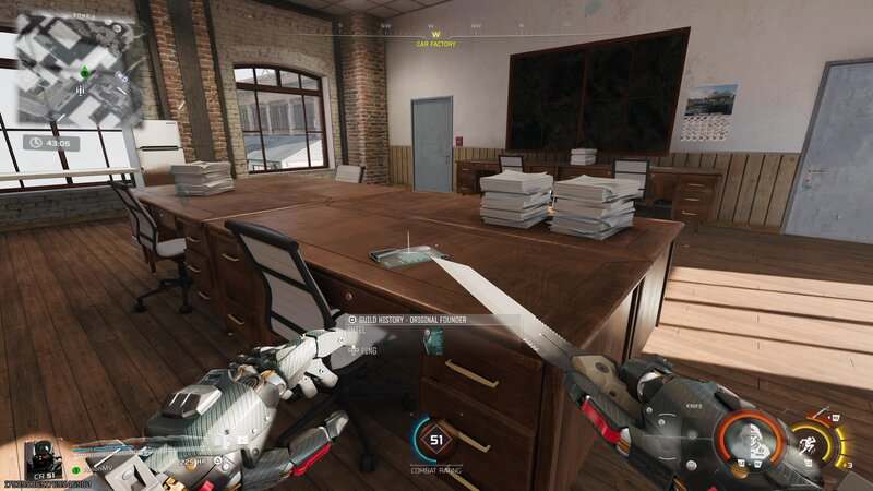 Accédez à l’emplacement de l’usine automobile dans le coin sud-est de la carte. Vous reconnaîtrez peut-être cette zone comme Opérations noires 1 carte multijoueur, WMD. Allez à l'extrémité nord de la zone et montez au deuxième étage de l'entrepôt. Vous trouverez un bureau qui ne fait pas partie de la carte multijoueur originale. Cet Intel est sur la table.