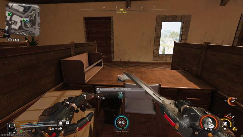 Rendez-vous dans le gratte-ciel où se trouve le Dr Falkner. Une fois à l’intérieur, dirigez-vous vers le toit. Ceux qui ont joué Opérations noires 6 reconnaîtra ce toit comme la carte multijoueur Skyline. Sortez par la porte à côté du piano et montez les escaliers à proximité pour entrer dans une salle de conférence. Cet Intel se trouve sur le bureau.
