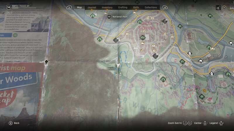 - Emplacement du mini-jeu à vélo: Trouvé dans l'extrême sud-ouest de la carte, directement au sud-ouest de Vieille ville. C'est au bord de la carte, sur une haute colline, à l'ouest de la Galerie d'art en bois dur. Vérifiez la carte ci-dessus pour un emplacement exact.
