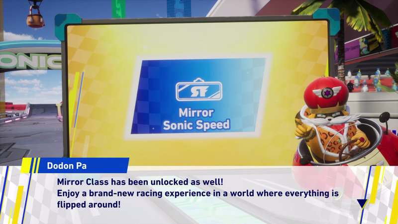Vous débloquerez la vitesse super sonore en complétant les 7 courses du Grand Prix à n'importe quelle vitesse. Vous devrez compléter les 6 premiers Grand Prix pour déverrouiller le Grand Prix des Eggs. Ce final Grand Prix est composé des pistes de Donpa Factory, Aqua Forests et Eggman Expo. En battant ce Grand Prix et en ayant une première place dans toutes les tasses avec n'importe quel personnage, vous débloquerez Mirror Sonic Speed.