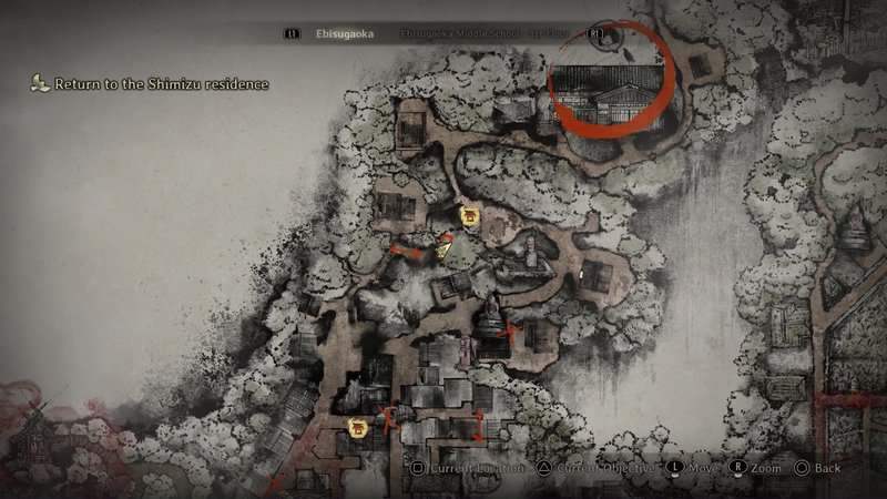 - Atteindre le Flashback de terrain de jeu Cluche sur le chemin de la maison de Hinako – la longue séquence de la maison pleine de puzzles. Vous devrez compléter la statue Jizo avant d'entrer dans la résidence.