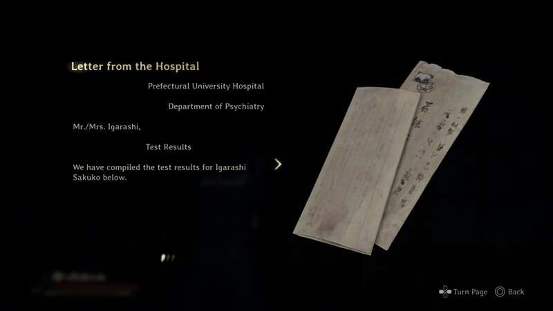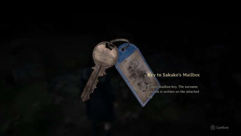 Une fois que vous avez la clé, vous devez retourner dans le sud-ouest et en ville pour vous rendre à la résidence Igarashi. Suivez la carte indiquée dans la première image ci-dessous pour vous rendre à la maison de Sakuko. Dirigez-vous vers le sud sur la route depuis le sanctuaire, puis passez devant le Hokora. Ensuite, allez vers le sud puis vers l'ouest pour retourner au Chizuruya General Store. Prenez la route au nord du magasin, puis tournez à gauche pour aller vers l'ouest. Prenez à droite pour aller vers le nord, puis prenez le premier virage à droite pour aller vers l'est. À la fin de cette petite ruelle se trouve la résidence Igarashi. Interagissez avec la boîte aux lettres à gauche de la porte pour obtenir l'araignée Omamori, ce qui diminuera considérablement la consommation de durabilité des armes en effectuant des attaques légères, et le Lettre de l'hôpital document. Vous débloquerez également la réussite de «une infraction fédérale».