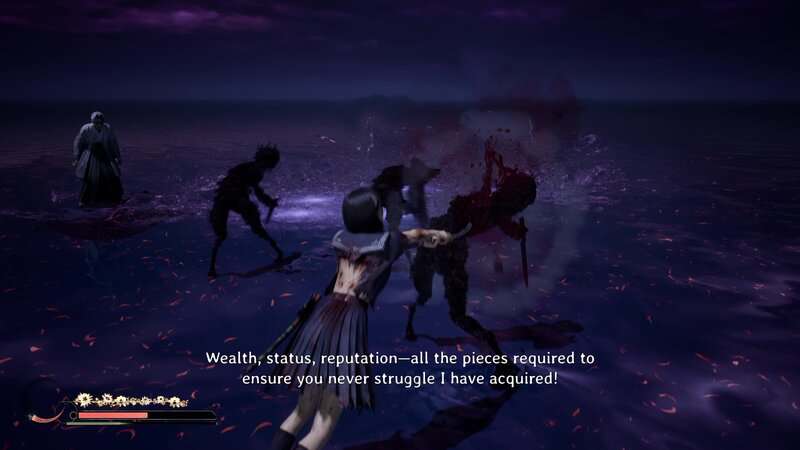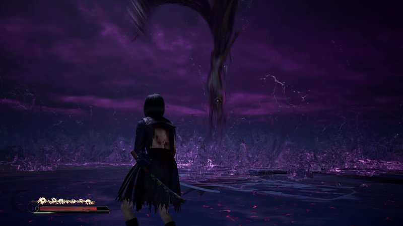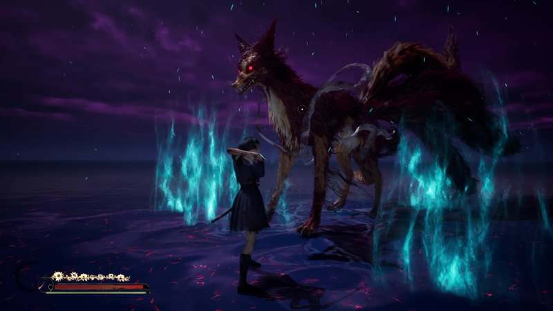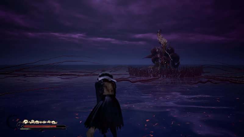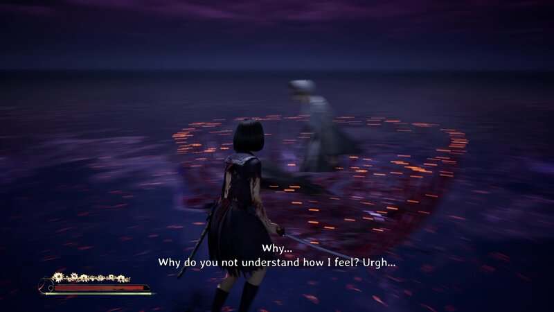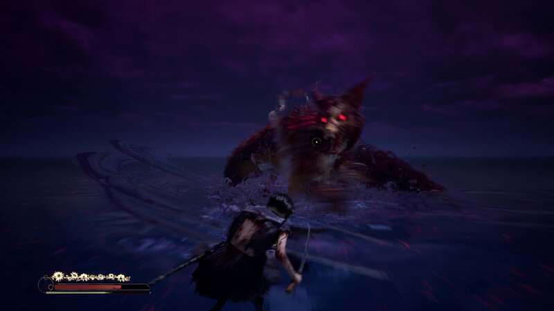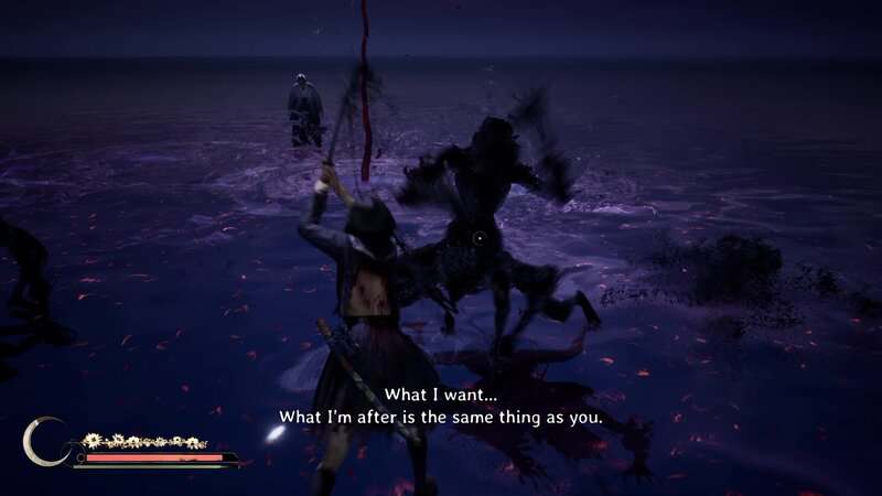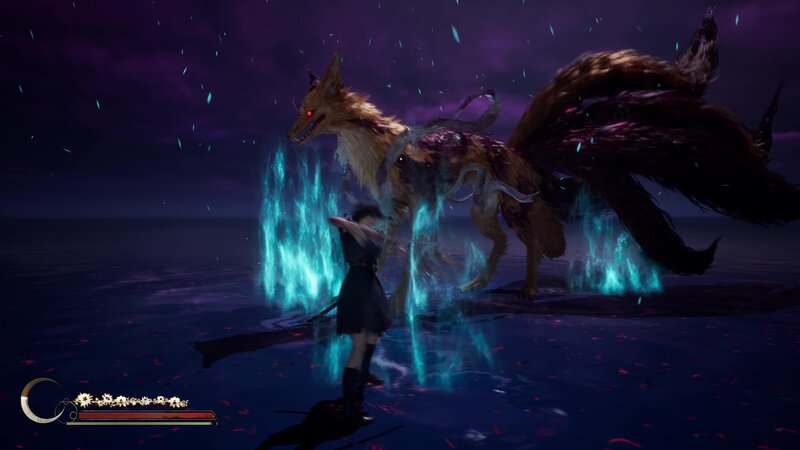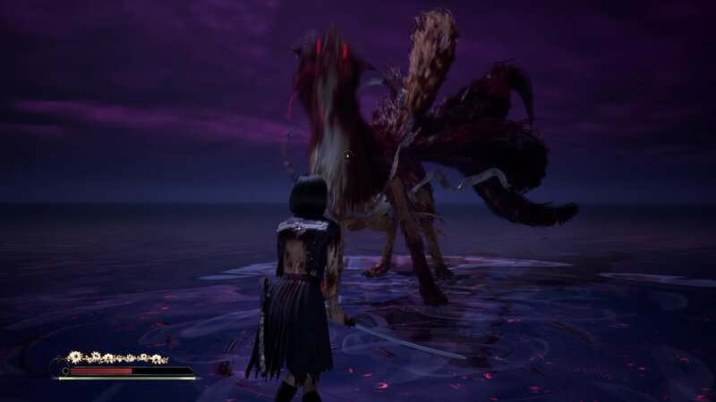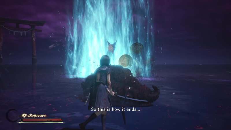 Répétez le processus d'esquive, de parade et d'attaques lourdes jusqu'à ce que vous détruisiez complètement la santé du boss. Une cinématique se jouera et le Shichibi tombera au début du Renard mouille sa queue. Si vous battez tous les monstres de l'ombre avant de battre le boss, vous débloquerez le succès/trophée « Fox Tamer ».