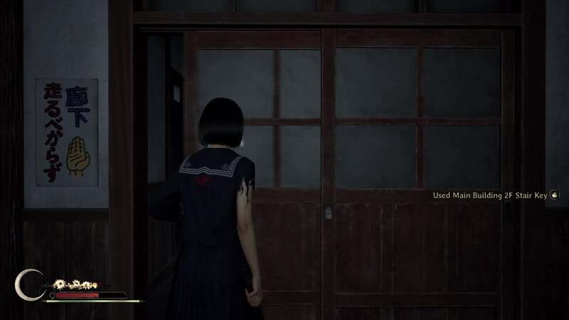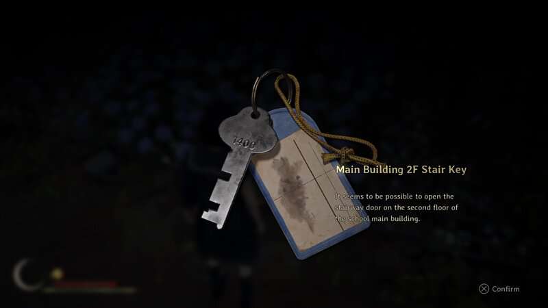 Allez en classe à l'est du salon de l'enseignant et sautez par la fenêtre ouverte à l'extrémité opposée de la salle pour atteindre le terrain de l'école. Une fois sur le terrain de l'école, vous devrez vous diriger devant plusieurs ennemis pour vous diriger vers le coin nord-ouest du terrain pour trouver le lit de Chrysanthemum. Vous pouvez trouver la clé d'escalier 2F du bâtiment principal.