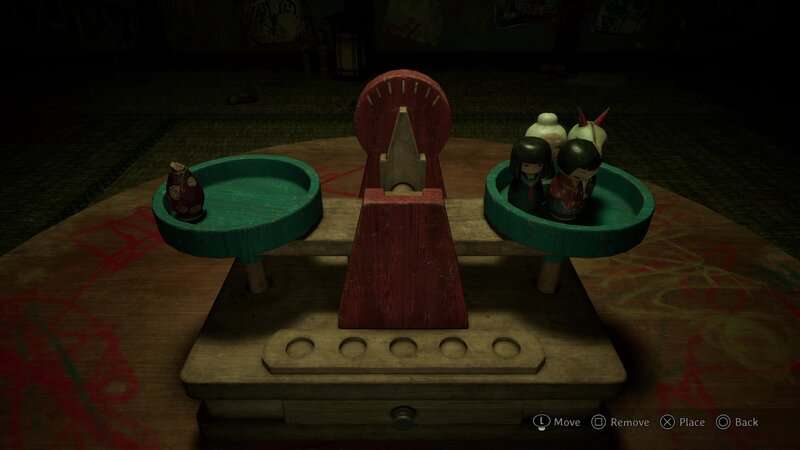 Il y a 5 poupées dans la balance. Il y a la poupée Hinako, la poupée femme, la vieille poupée, la poupée renard et la poupée sans tête. Vous devrez les placer des deux côtés de la balance jusqu'à ce qu'elle soit parfaitement équilibrée. Voici comment équilibrer la balance.