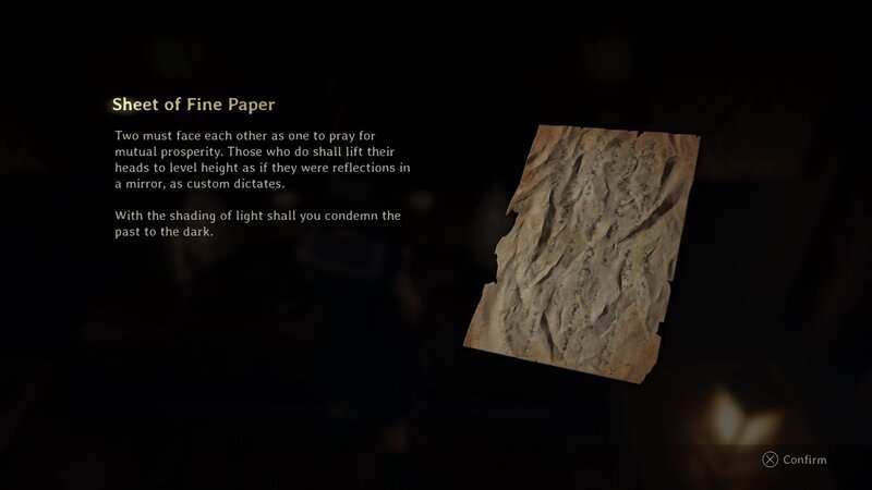 Le puzzle léger se trouve à la fin des couloirs orientaux de la salle de culte. Il s'agit de la troisième section d'un autre monde et est accessible après avoir terminé la section Ebisugaoka Middle School du jeu. Une fois dans le couloir, passez par la porte de la crête de lapin blanche à droite du hall principal. Faites votre chemin dans toute cette zone et vous atteignez une chambre avec une série de cages et Sakuko enfermés dans l'une des cages. Allez vers l'autel pour trouver un Feuille de papier fin document. Cette note vous donnera un indice sur la façon de résoudre le puzzle léger, mais il changera en fonction de la difficulté de votre puzzle.