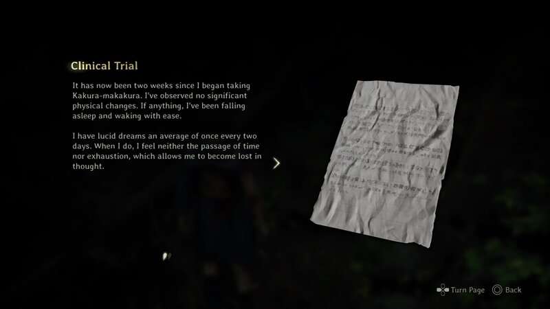 Lors de la 5ème visite à Ebisugaoka dans New Game+, descendez la montagne depuis la maison de Shu. Après avoir vaincu le monstre enceinte, continuez à descendre la colline jusqu'à ce que vous trouviez un bâtiment sur votre gauche. Ce sera à proximité de quelques escaliers menant à un sanctuaire. Montez jusqu'au sanctuaire et regardez les rochers à sa gauche pour trouver ce document.