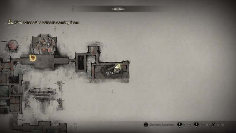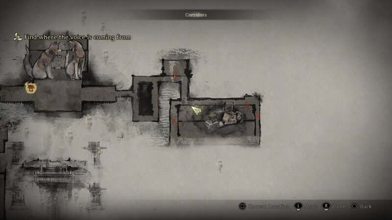 Durant la section Couloirs, la zone que vous explorez lors de votre deuxième visite dans l'Autre Monde, progressez dans la zone jusqu'à atteindre la bibliothèque. La bibliothèque se trouve à l’extrémité est des couloirs après avoir obtenu le Naginata. Une fois à l’intérieur de la bibliothèque, allez sur le côté droit du premier couloir. Regardez derrière une étagère pour trouver ce document par terre.