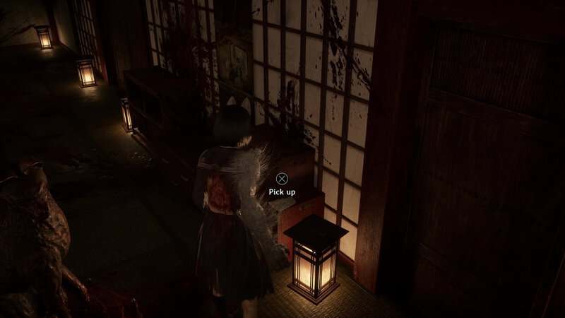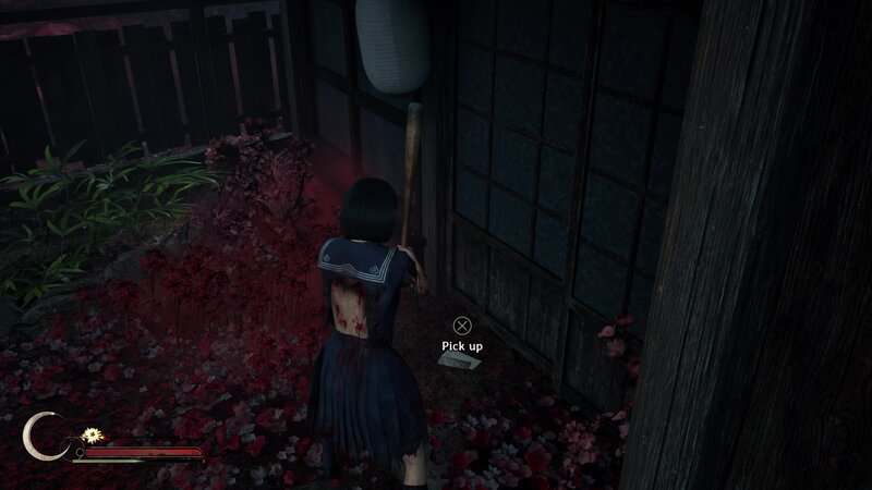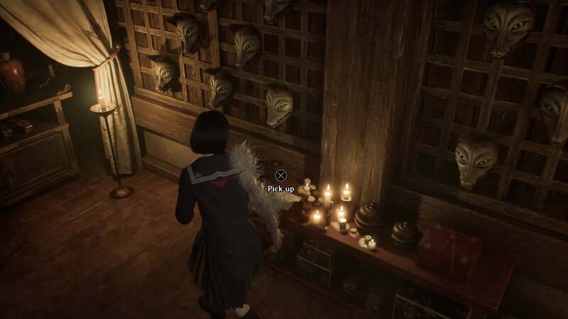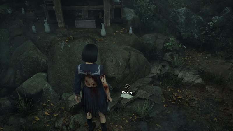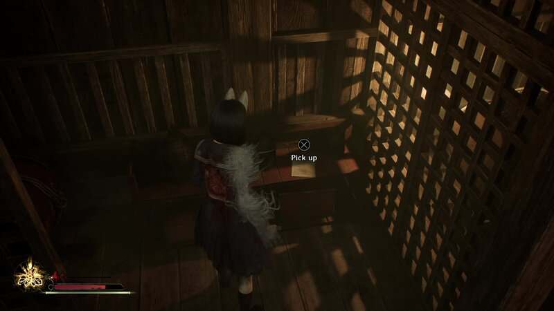 Franchissez la porte en face de la peinture murale pour entrer dans une pièce sans statues d'Inari. Il y a quelques cercles sanglants au sol. Utilisez le masque de renard et concentrez-vous sur le cercle le plus à droite pour invoquer la statue d'Inari blessée. Retirez la lance et les Inari se tourneront vers la porte de droite et leurs yeux brilleront en bleu. Franchissez cette porte puis regardez dans le coin du carré au sol au centre de la pièce pour trouver ce document.